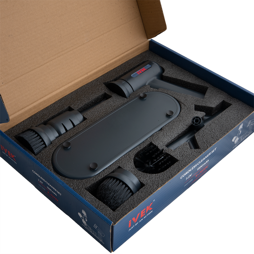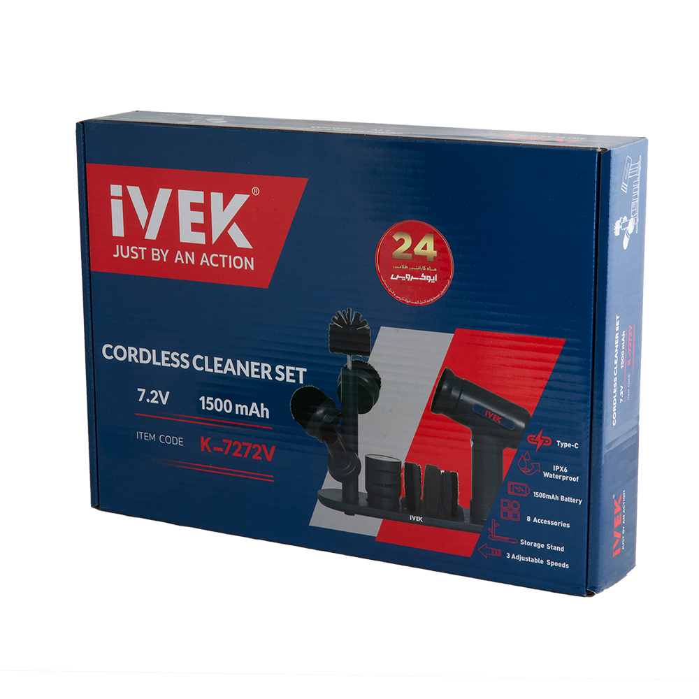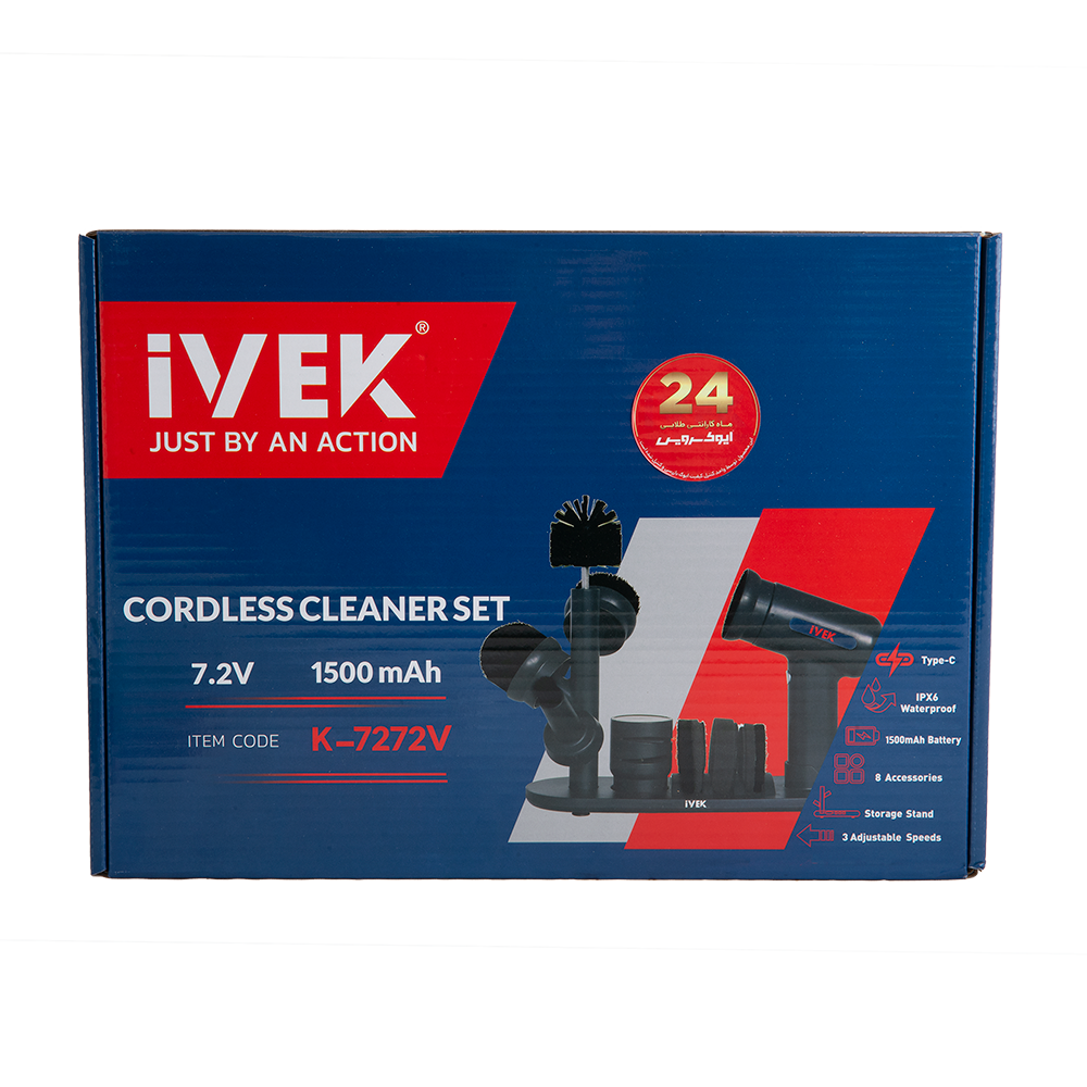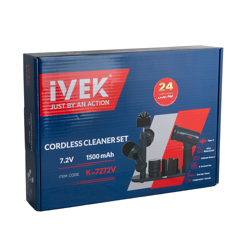 ست شستشوی شارژی K-7272V ایوک یک ابزار جمعوجور و چندکاره است که با موتور سهسرعته، باتری لیتیومی ۷٫۲ ولت و ۸ سری متنوع، مناسب برای نظافت خانگی، کاربردهای مرطوب و خشک، و تیز کردن سطوح مختلف است.