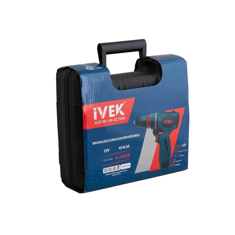 دریل شارژی براشلس ۱۲ ولت(دوکاره) K-7222B ایوک
