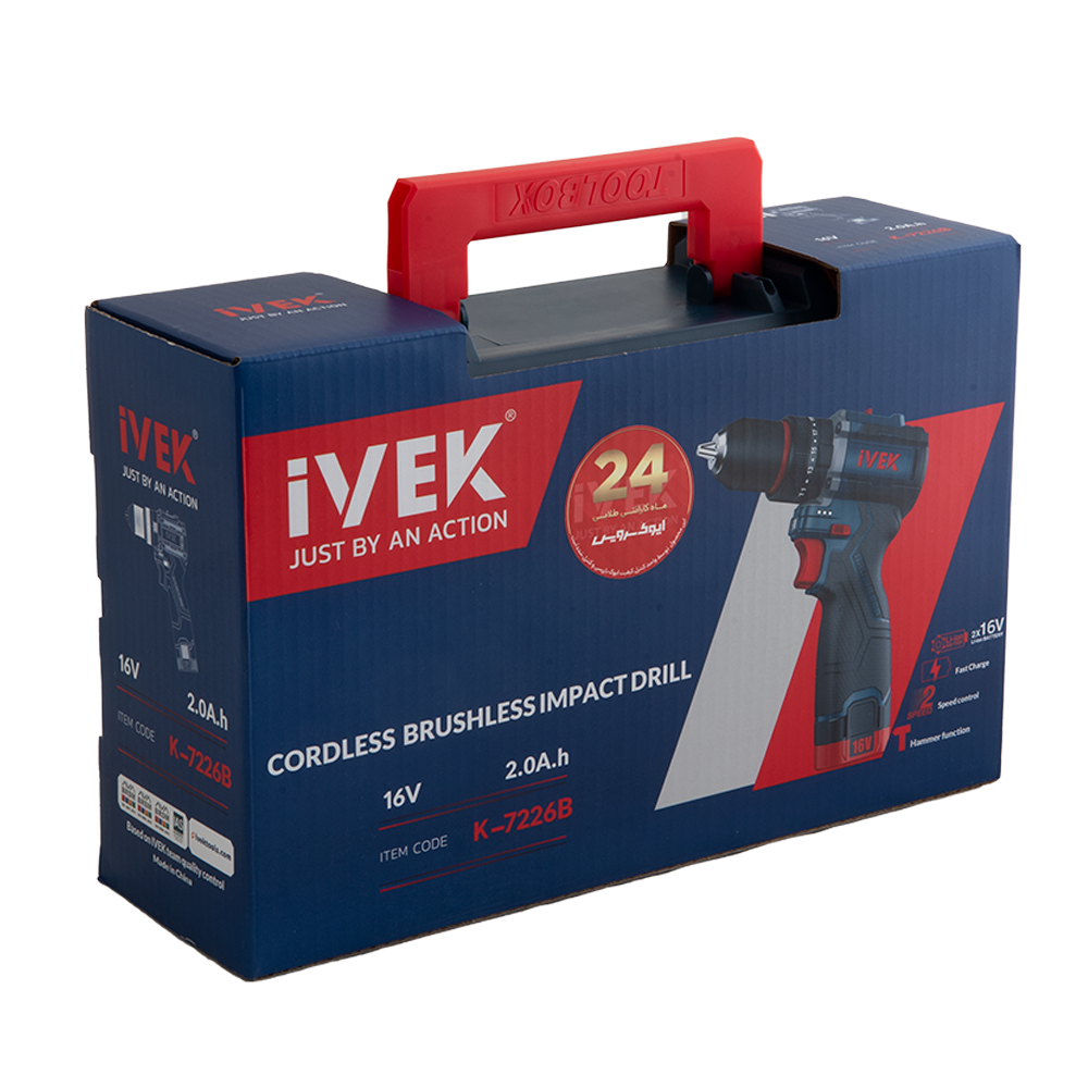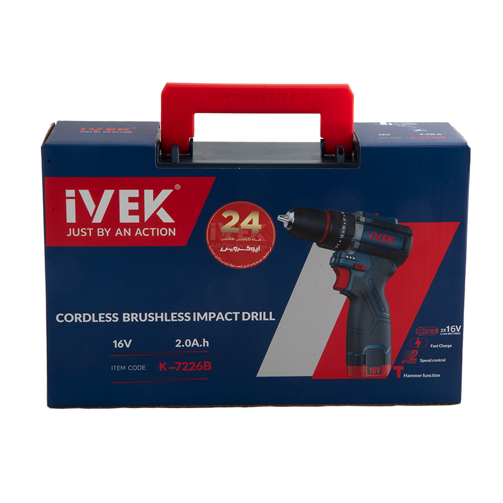 دریل شارژی چکشی براشلس ۱۶ ولت K-7226B ایوک