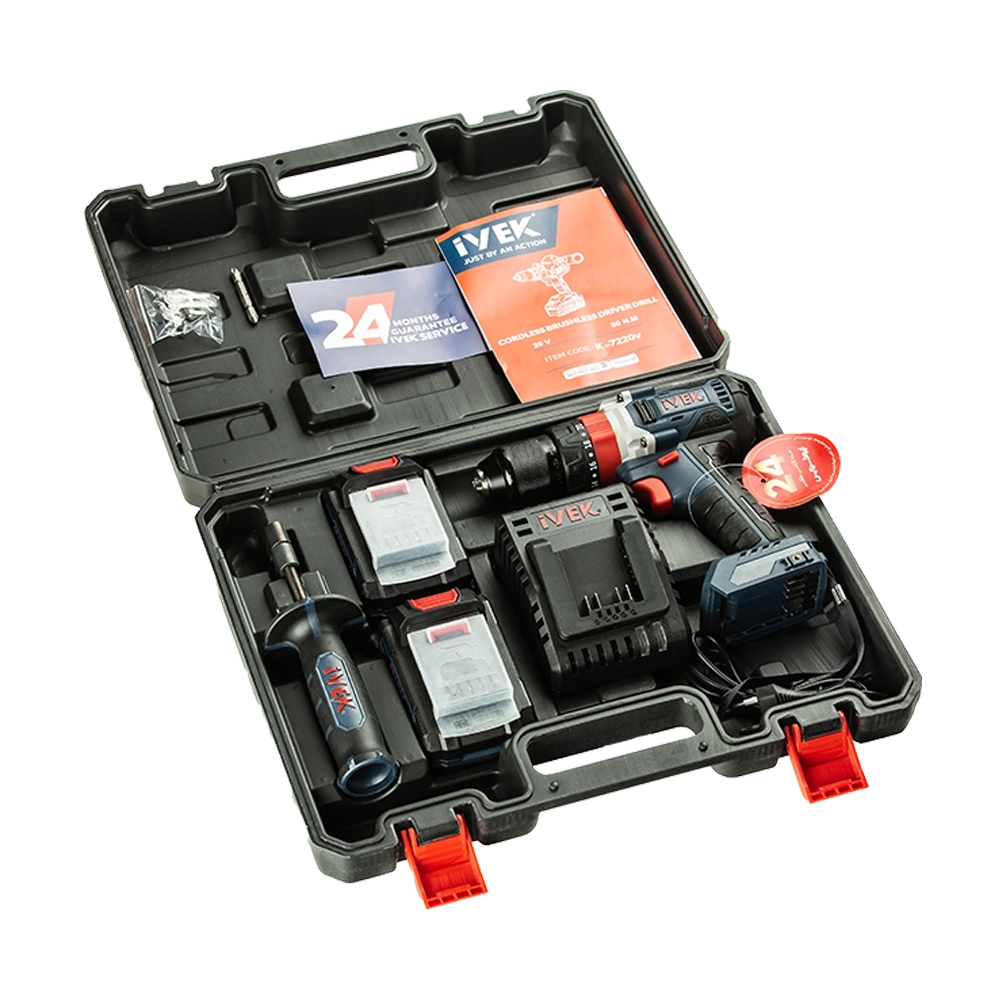 دریل شارژی چکشی براشلس ۲۰ ولت K-7220V ایوک محصولی دیگر از سری ابزار آلات شارژی ایوک می باشد ،در ادامه به بررسی مشخصات و ویژگی های این ابزار شارژی میپردازیم.