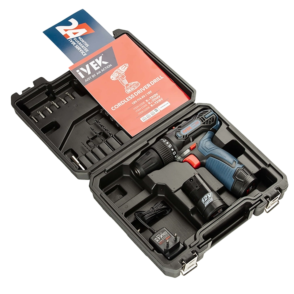 دریل شارژی ۱۲ ولت لیتیومی K-7212V ایوک محصولی دیگر از سری ابزار آلات شارژی ایوک می باشد ،در ادامه به بررسی مشخصات و ویژگی های این ابزار شارژی میپردازیم.