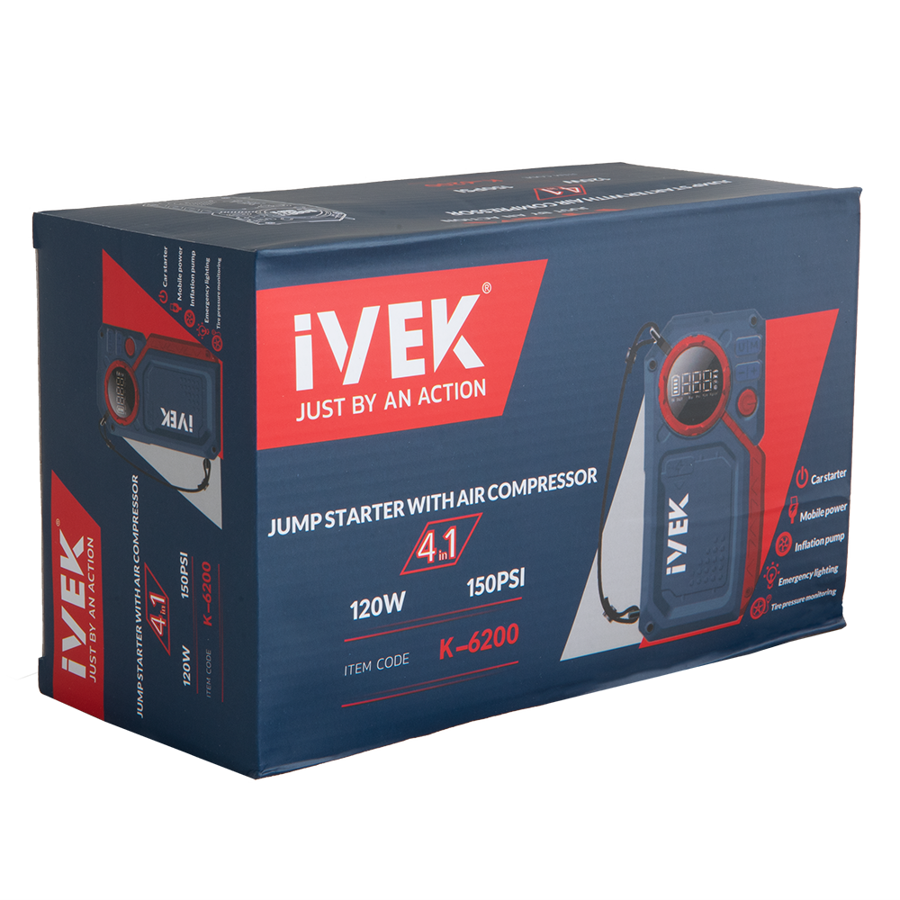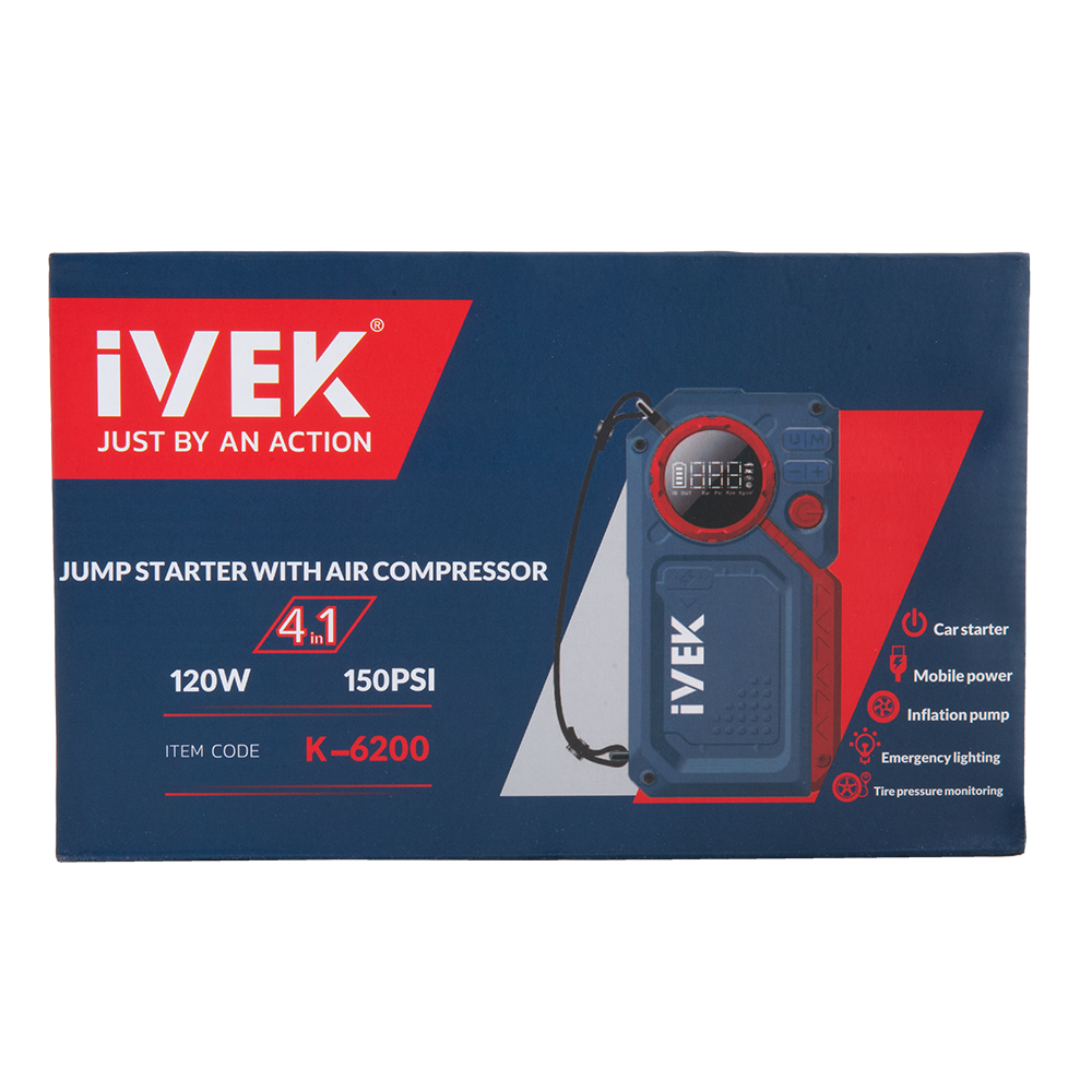 مینی کمپرسور و جامپ استارتر چهارکاره K-6200 ایوک