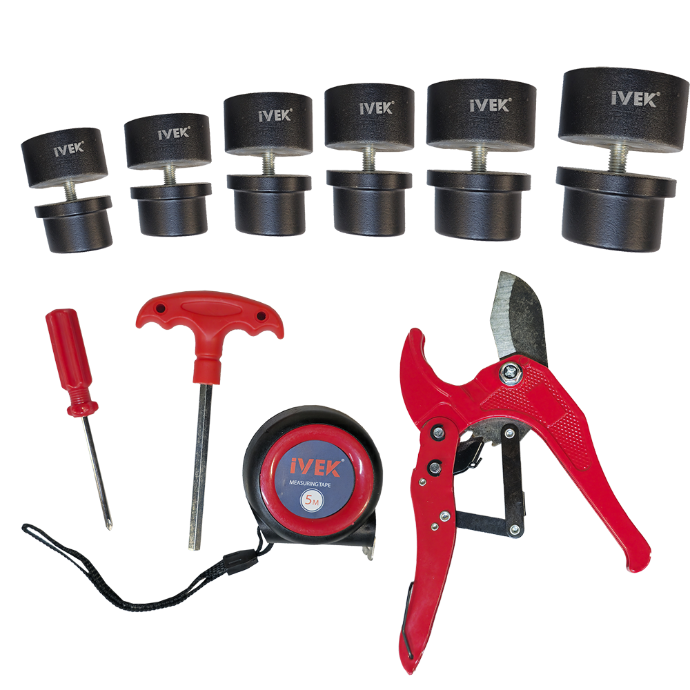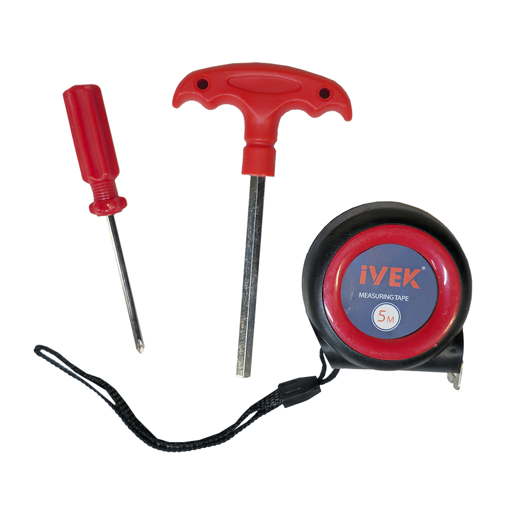 - دارای یک عدد راکت اضافه، قیچی لوله PVC چهل و دو میلیمتری، دستکش جوشکاری، متر ۵ متری با دو استپ، سیم سیار، آلن T شکل، پیچگوشتی است.